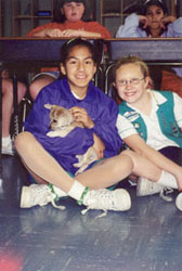 Nugent and Murphy Dog pose with the Girl Scouts |