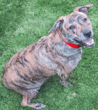 Lola is extremely affectionate and submissive. She is great around dogs and CATS and would be a wonderful addition to any family who will give her the attention she deserves. She is small enough to curl up next to you on the couch or in a chair! And, if you've always wanted a dog to play ball with, Lola is perfect for you! She's an excellent catcher and faithfully brings the ball back to you. Add to all that her beautiful brindle coloring and low/no maintenance fur, and this girl has it all! She'll make you very happy! If you would like to meet Lola, please contact Canine Crusaders today!