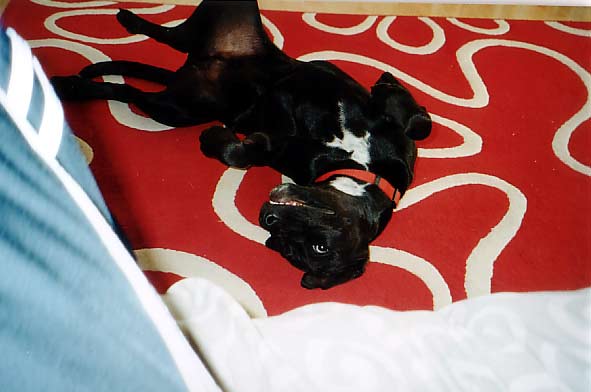 We're happy to announce that Tron (formerly Georgie) was adopted to a wonderful, loving home! His new parents, Mark and Erika, shower him with affection and let him lounge in the "big bed". He's very much a part of his new family. This is one loved dog and we're very happy for all of them!