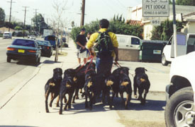 Cesar walking Will Smith's 8 rottweilers and chihuahua.